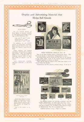 This folder was to sell the dealers and get them to carry Wiss products. I date it to 1927 based on the ad depicted on pages 3 and 5 is the same ad shown on the back cover of the 1927 catalog. All quote the same 75 years of Wiss reputation.