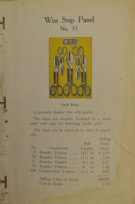 29: Wiss No. 150 Traveling Display Contents List: January 1, 1924