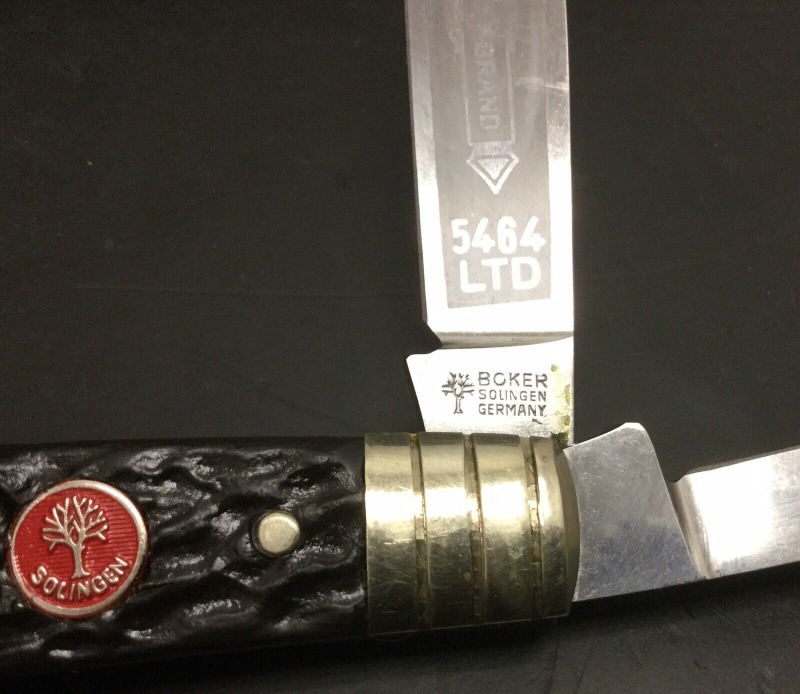 Model 5464 Ltd. Medium Congress Pen Knife: Two sheepfoot, one pen, and one coping blade. 3-3/4" closed. Made in Solingen, Germany.
