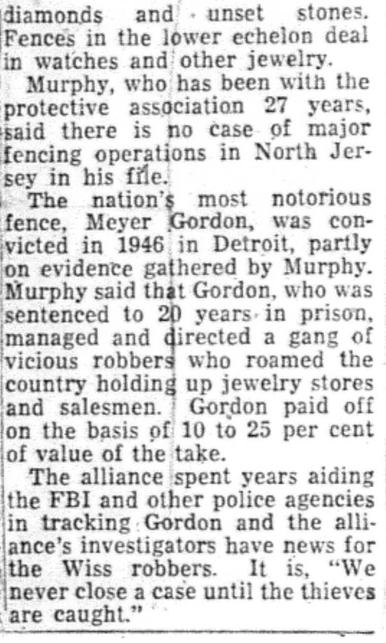 The nation's most notorious fence, Meyer Gordon, was convicted in 1946 in Detroit, partly on evidence gathered by Murphy.