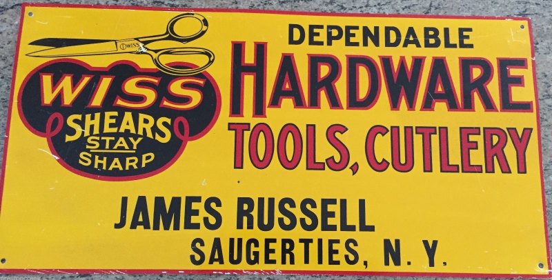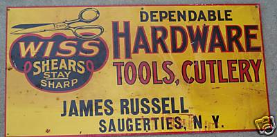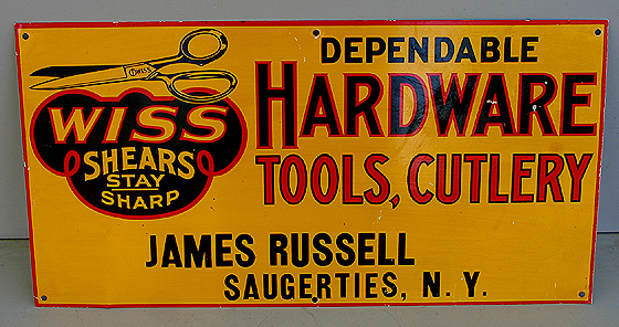 This is the sign that I bought in August 2007. This is when I first began regularly following Wiss on eBay. This sign was the first I saw. I paid a premium: $56.98 + $30 shipping.