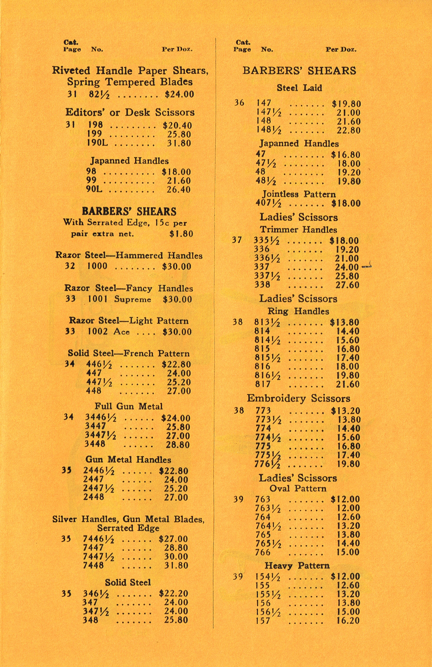 A six page price list for dealers with the cost for each item. This so your salepeople will know how much is made for each sale..