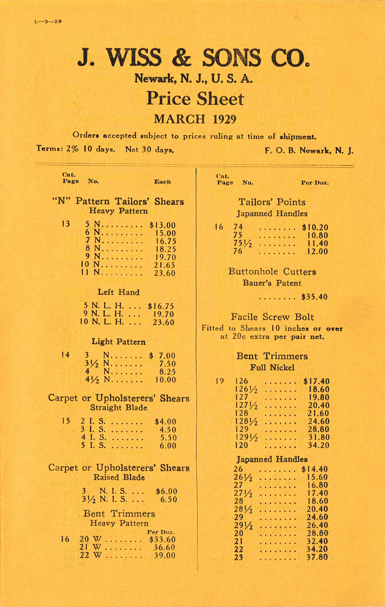 ← Price List March 1929 (L-3-29)