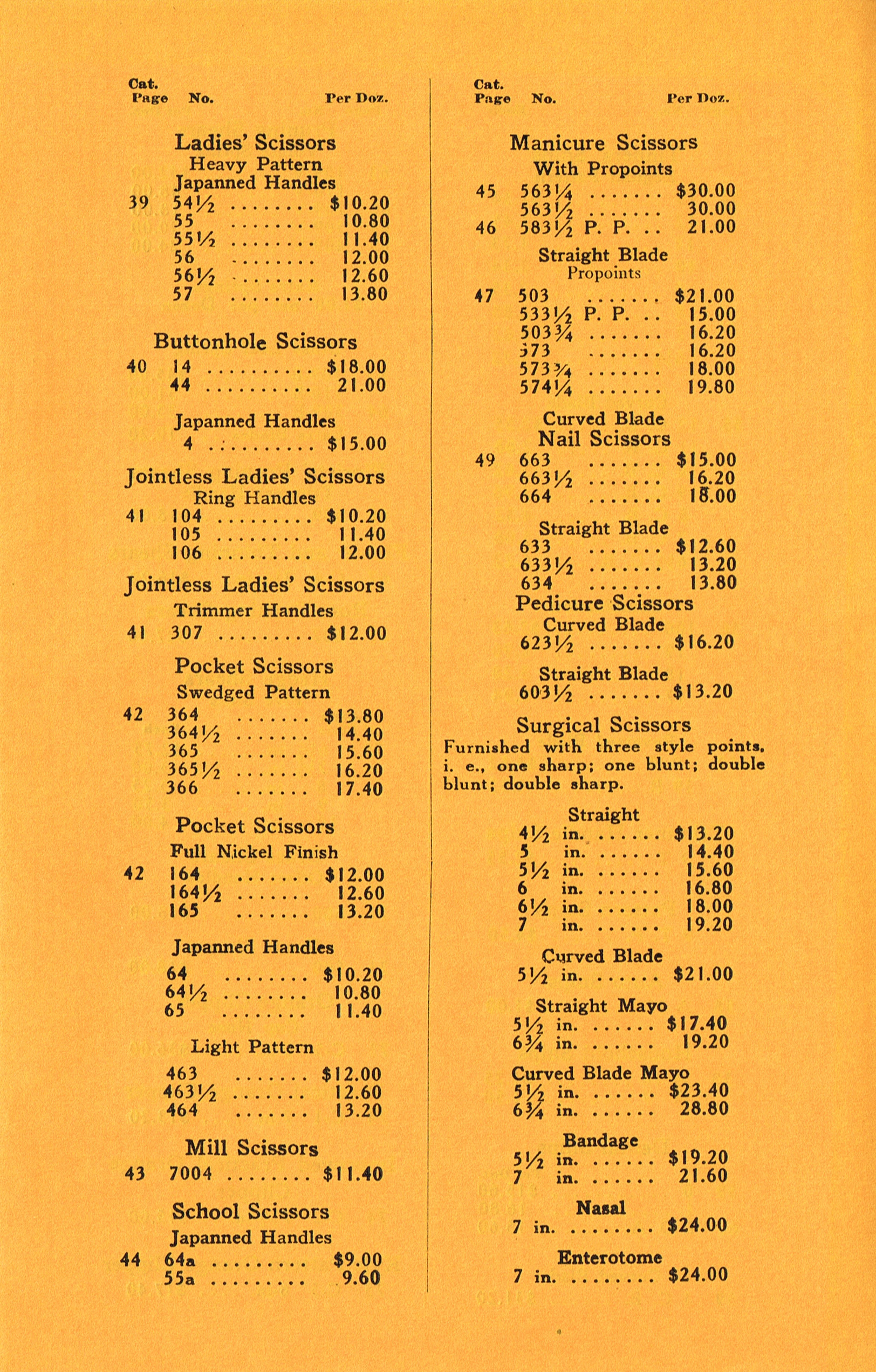 A six page price list for dealers with the cost for each item. This so your salepeople will know how much is made for each sale..