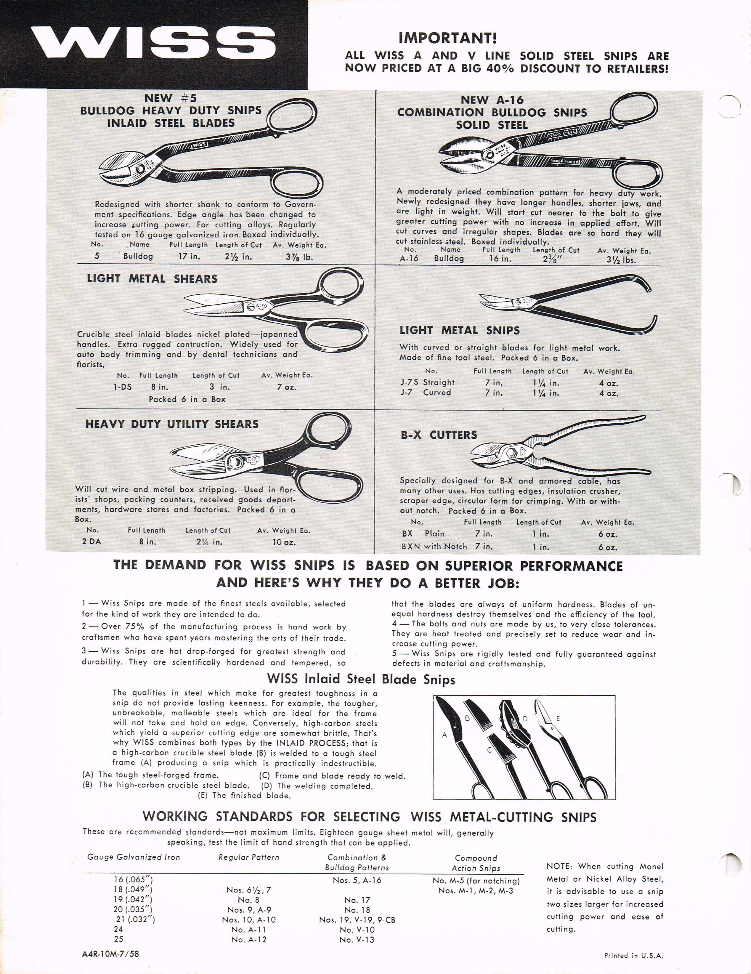 Cut sheet July 1958. Form A-4R-10M-7/58