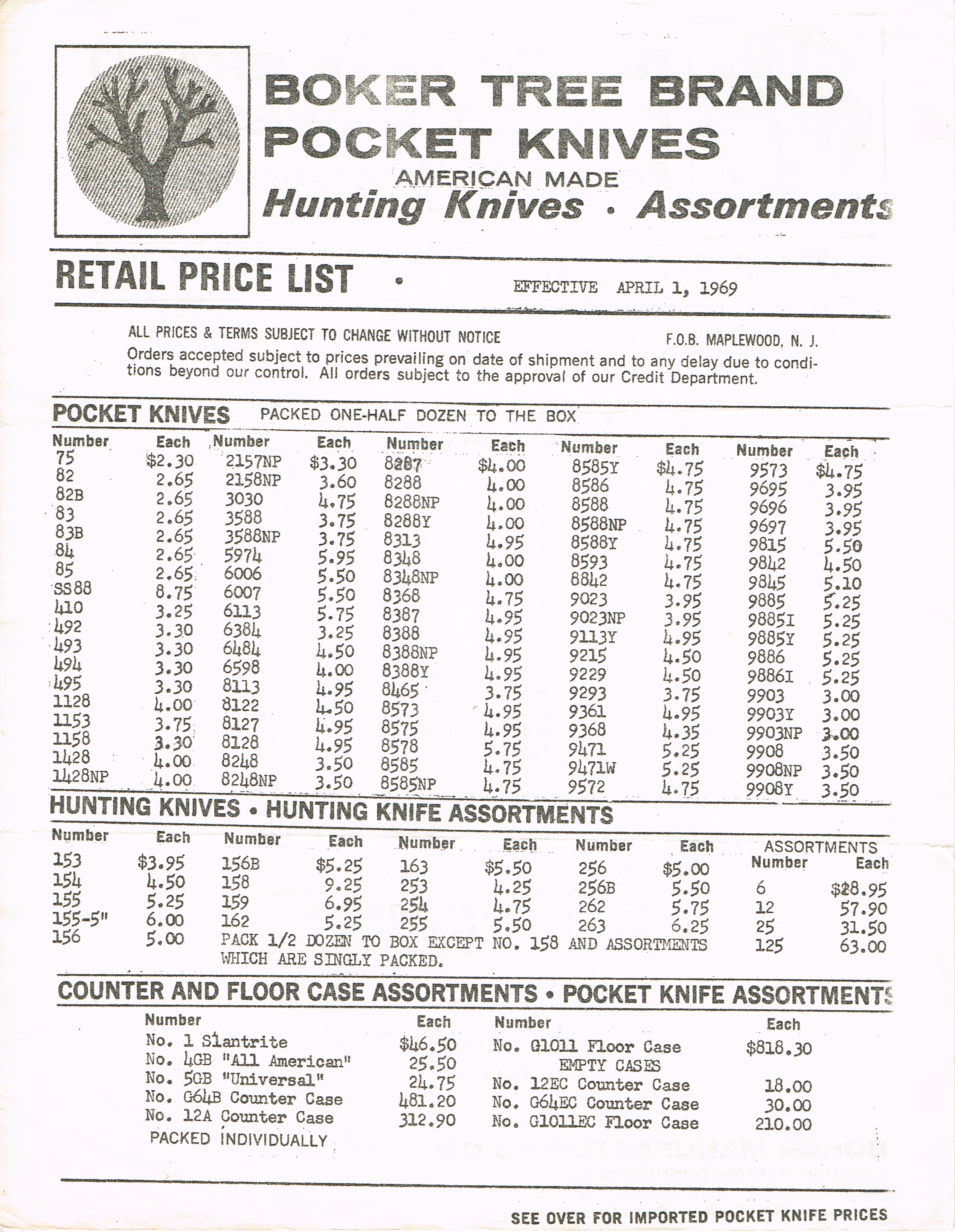 Pocket Knives: 1966 Catalog and 1969 Prices